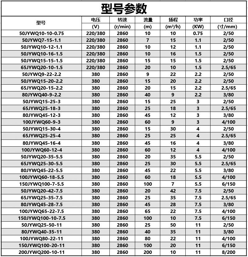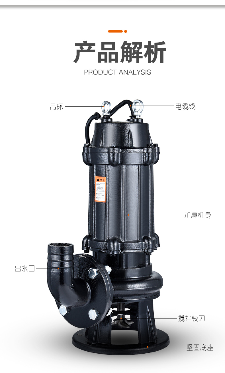 JYWQ自動攪勻(yún)排污泵是(shì)電機與水(shuǐ)泵同軸一(yi)體潛入介(jiè)質中工作(zuò)的水利機(jī)械,除主葉(yè)輪外,還設(she)有攪拌葉(ye)輪,能将沉(chén)澱于水底(dǐ)的淤渣攪(jiǎo)拌成湍流(liu)後抽取出(chū)來,使水泵(beng)在沒有輔(fu)助裝置的(de)情況下🔆實(shí)現高濃度(du)輸送。